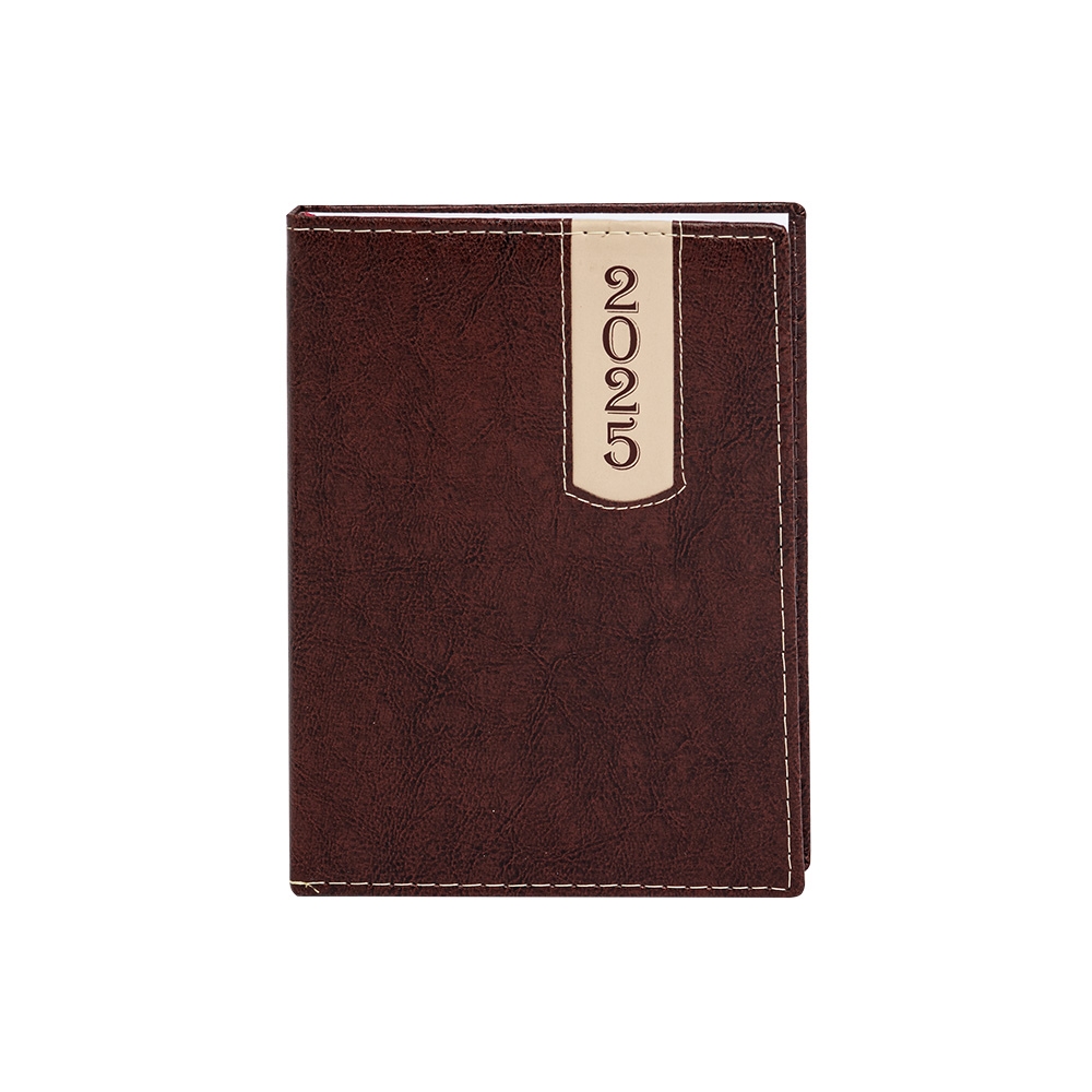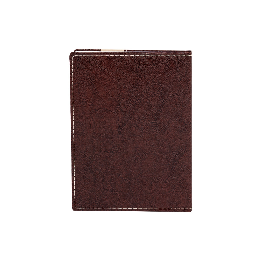 Agenda produzida em couro sintético, possui detalhes de costura e escrita do ano ?2026? na parte superior direita. Contém marca página em cetim, páginas de dados pessoais, calendário de 2026, mapa do Brasil, mapa global, índice telefônico e planejamento.