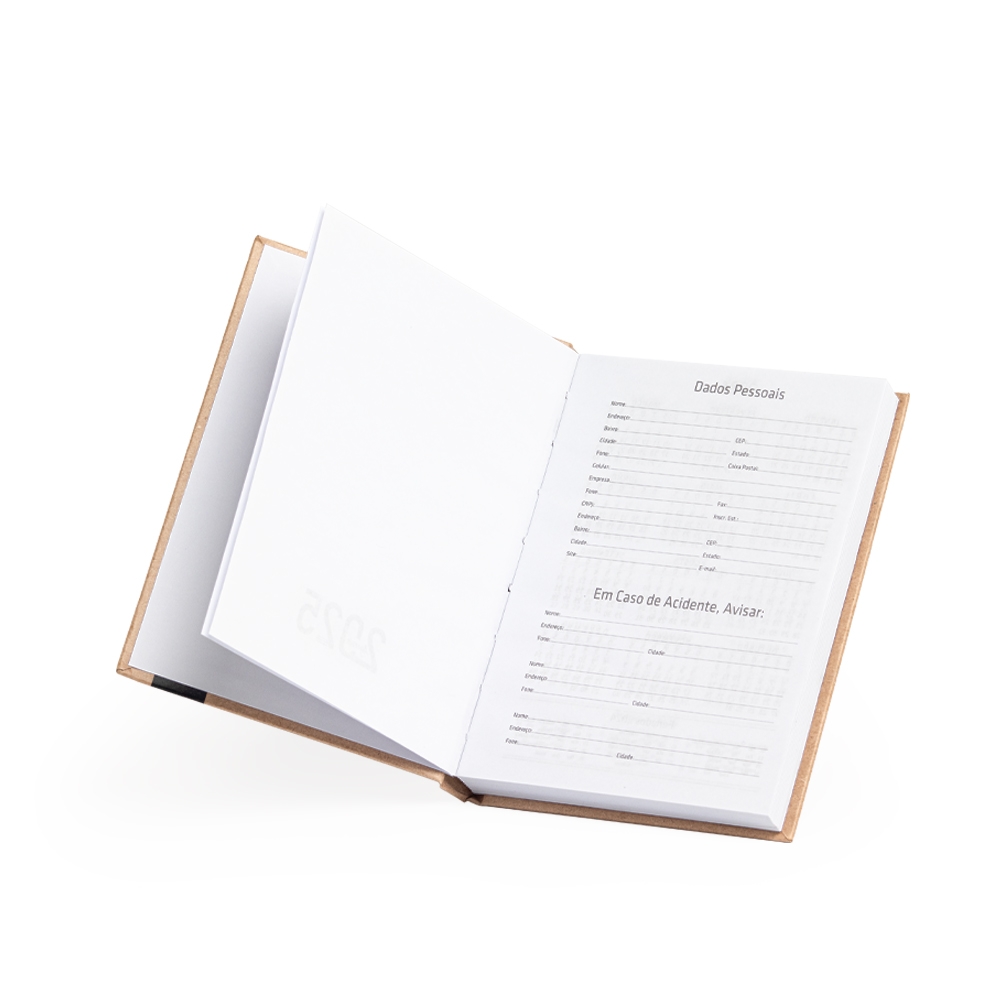 Comece o ano de forma ordenada e planejada com nossa Agenda Diária 2025. Feita em kraft, ela combina simplicidade com um toque de elegância natural. Possui espaço para dados pessoais, calendário de 2024 a 2026, planejamento mensal e espaço dedicado aos aniversariantes importantes.