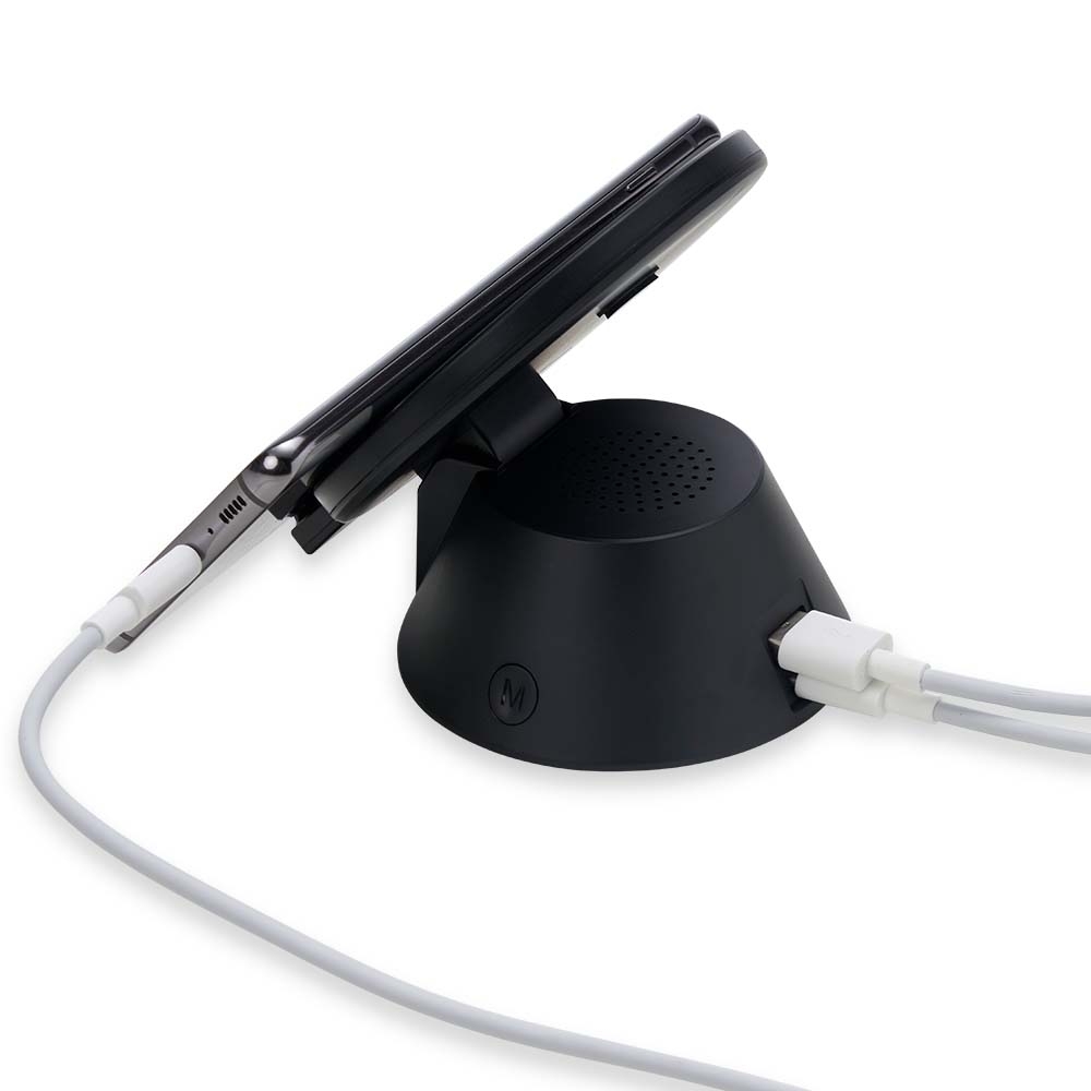 Ouça música enquanto carrega o smartphone! A nossa Caixa de Som bluetooth é produzida em material plástico, com antiderrapantes emborrachados na parte inferior e ao ser inclinada, o produto também pode ser utilizado como suporte para o celular. Para desfrutar do carregamento por indução (sem fio) é fundamental que o celular possua a tecnologia QI – desta maneira é possível carregar o celular posicionando-o sob o carregador, sendo necessário apenas conectar o carregador à uma fonte de energia (USB ou diretamente na tomada). Acompanha cabo USB Tipo-C.