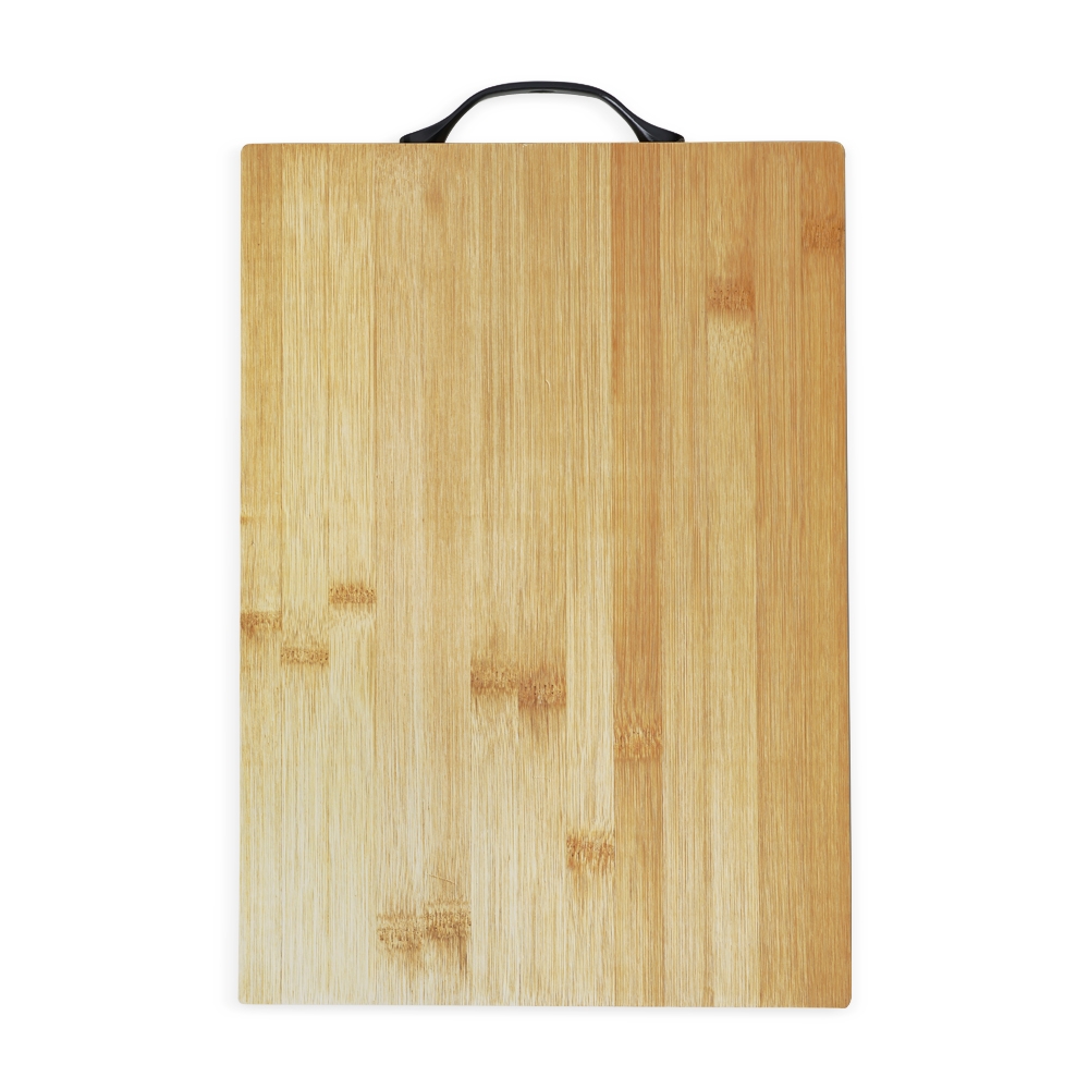 Tábua de corte com alça plástica.