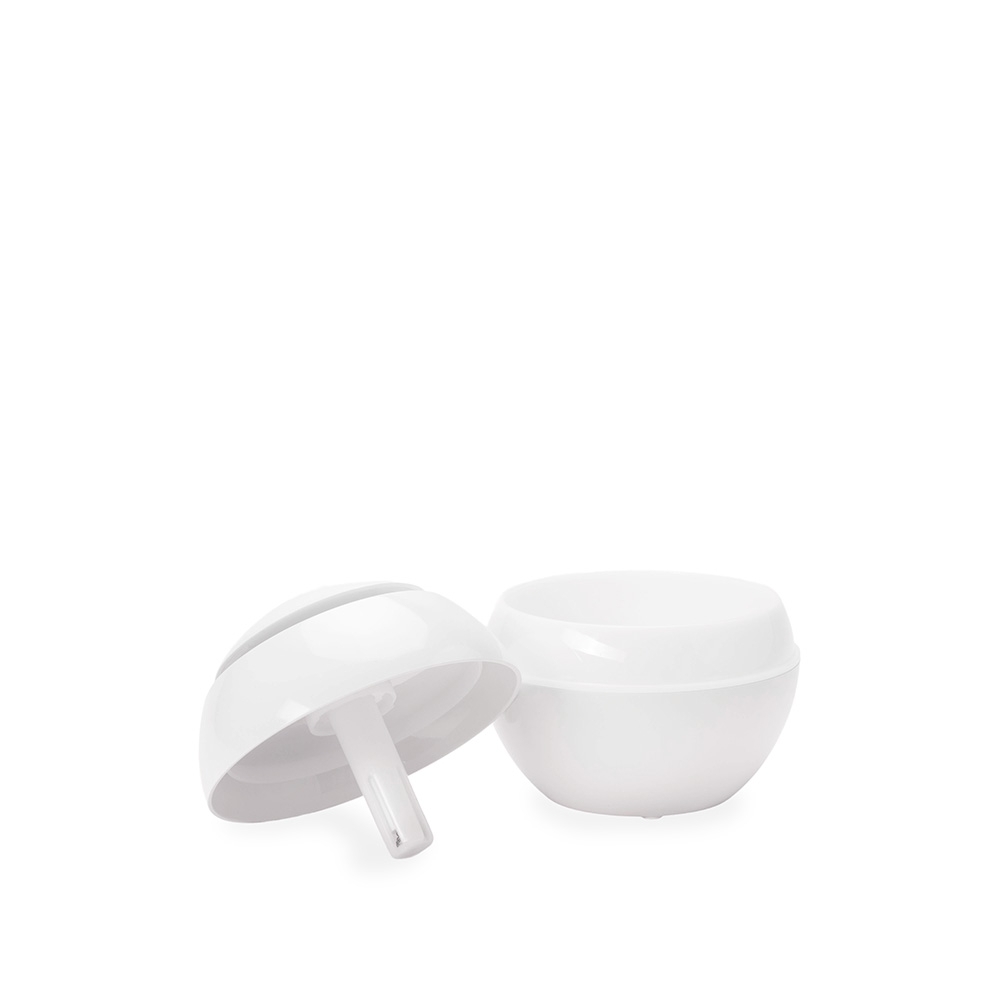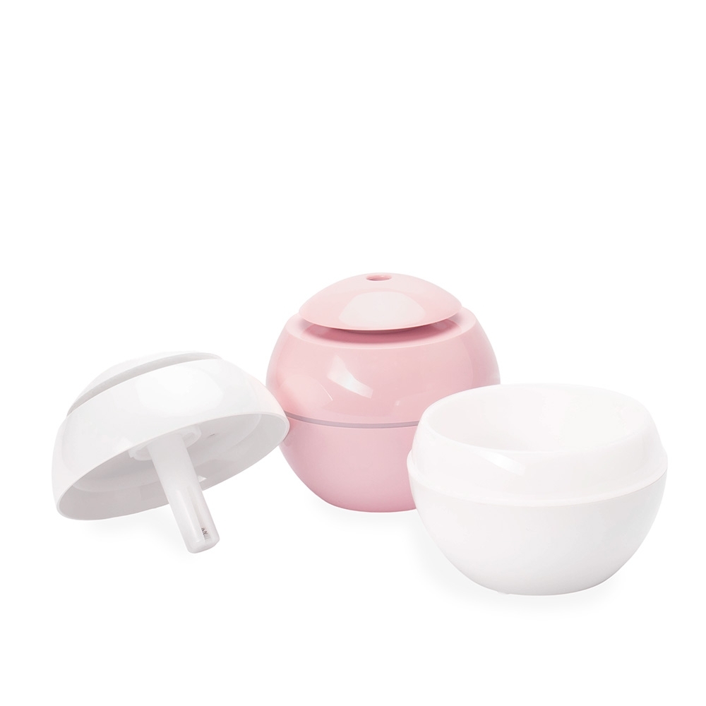 Umidificador de ar feito em plástico, com design inspirado em vaso, iluminação LED e reservatório de água com capacidade de até 200ml. Apresenta dois modos de névoa: o contínuo e intermitente. Funciona apenas quando conectado a uma fonte de energia por meio de sua entrada USB-C. Acompanha filtro de algodão e cabo USB-C.